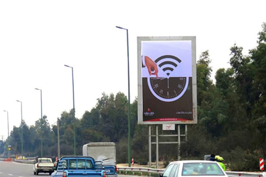 بیلبورد بزرگراه آزادگان، شرق به غرب، بعد از بزرگراه شهید تندگویان، مقابل بازار میوه و تره بار مرکزی